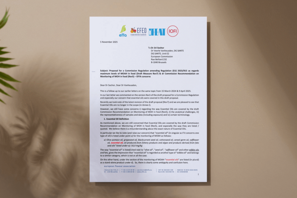 As follow-up to EFFA PPP TF letter from April 2025 (on the Draft Measure on Mineral Oils, Rev5) and the further exchange in April 2025, a joint letter was prepared by EFFA, IOFI, EFEO, and IFEAT concerning the latest revision of the Draft Commission Recommendation on Monitoring of MOH in food (Rev5) addressed to DG SANTE.